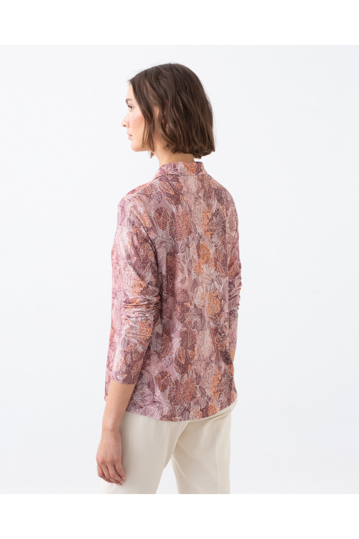 Camisa COL camisera de manga larga con cuello camisero y cierre con botones en delantero. Tejido estampado en delantero y punto en espalda, cuello y mangas del mismo estampado flores rosados. Modelo: altura 178 cm. - Talla 38