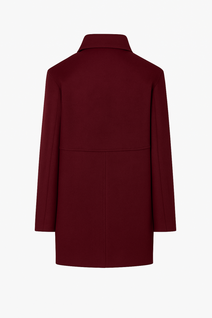 Chaquetón CHENIS granate con cortes en delantero con bolsillos de tapeta veticales. Cuello camisero. Abrochado con botones y adorno de pespunte puntet a tono. Modelo: altura 178 cm. - Talla 38