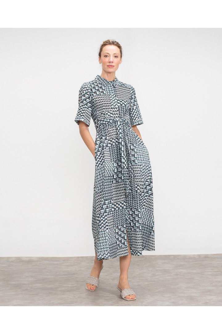 Vestido VIU midi de manga corta con lazadaModelo: altura 178 cm. - Talla 38