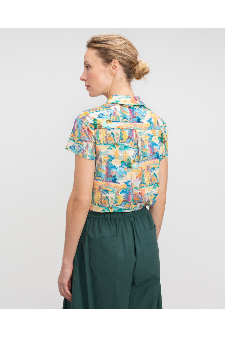 Camisa TICO con cuello camisero en manga casquillo y abertura en los laterales