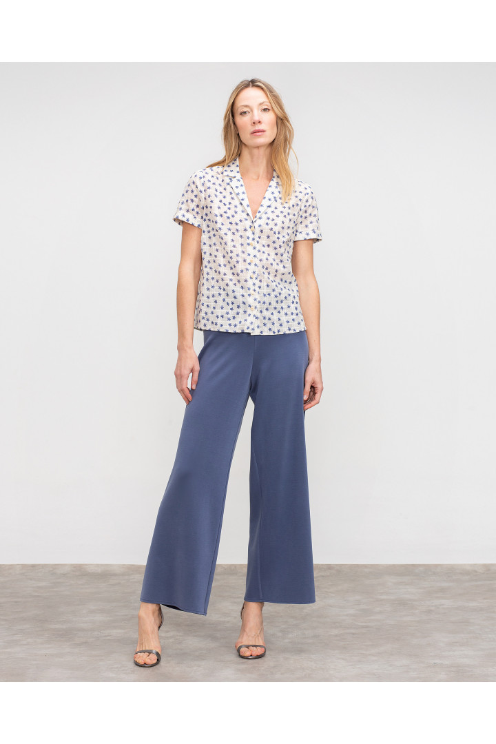 Camisa CARTA en batista camisera de manga corta con solapa fina. Detalle de botones delanteros.Canesú en espalda. Modelo: altura 178 cm. - Talla 38