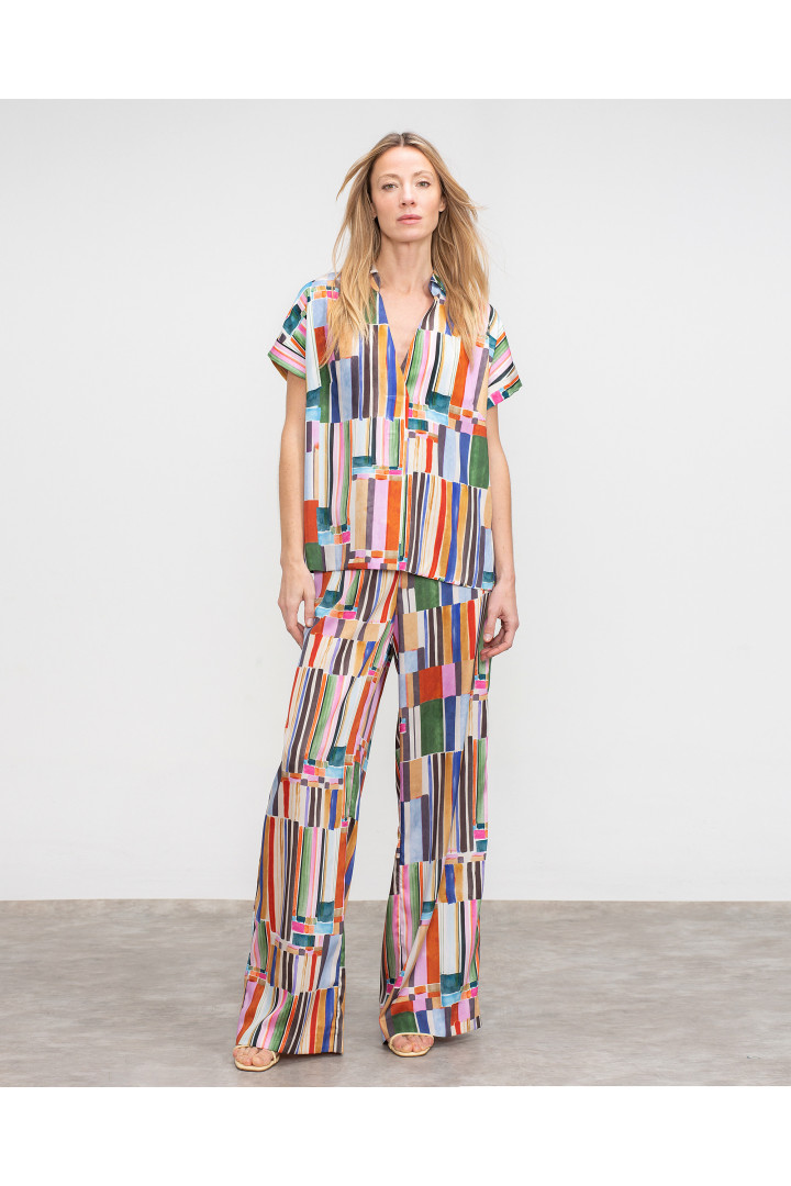 Pantalón PITIN ancho largo de raso Modelo: altura 178 cm. - Talla 38