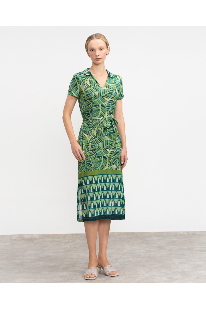 Vestido VUY con cuello redondo y cinturónModelo: altura 178 cm. - Talla 38