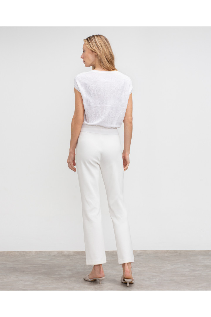 Pantalón PARON de tiro alto con bolsillo francés. Cinturilla con pasadores para cinturón. Largo de 93 cm y ancho del bajo de 17 cm.Modelo: altura 178 cm. - Talla 38