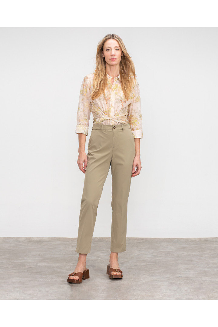 Pantalón PINI corte tobillero y recto, con pasadores y cierre con cremallera y botón delantero. Con bolsillos franceses.