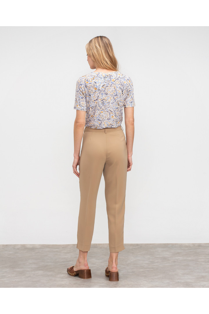 Pantalón PAIL de tiro alto con cinturilla y bolsillos con cremallera. Corte tobillero con aberturas laterales y nervio delantero. Largo de 91 cm y ancho de bajo de 16 cm.