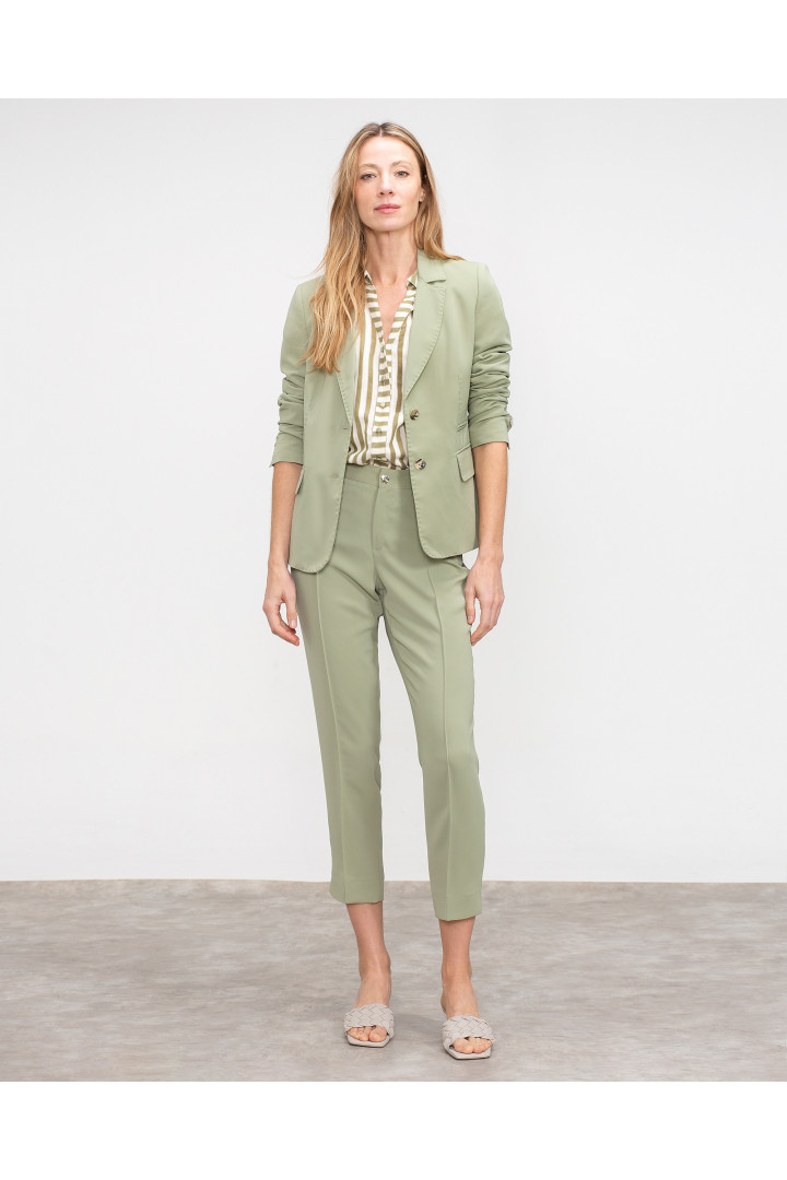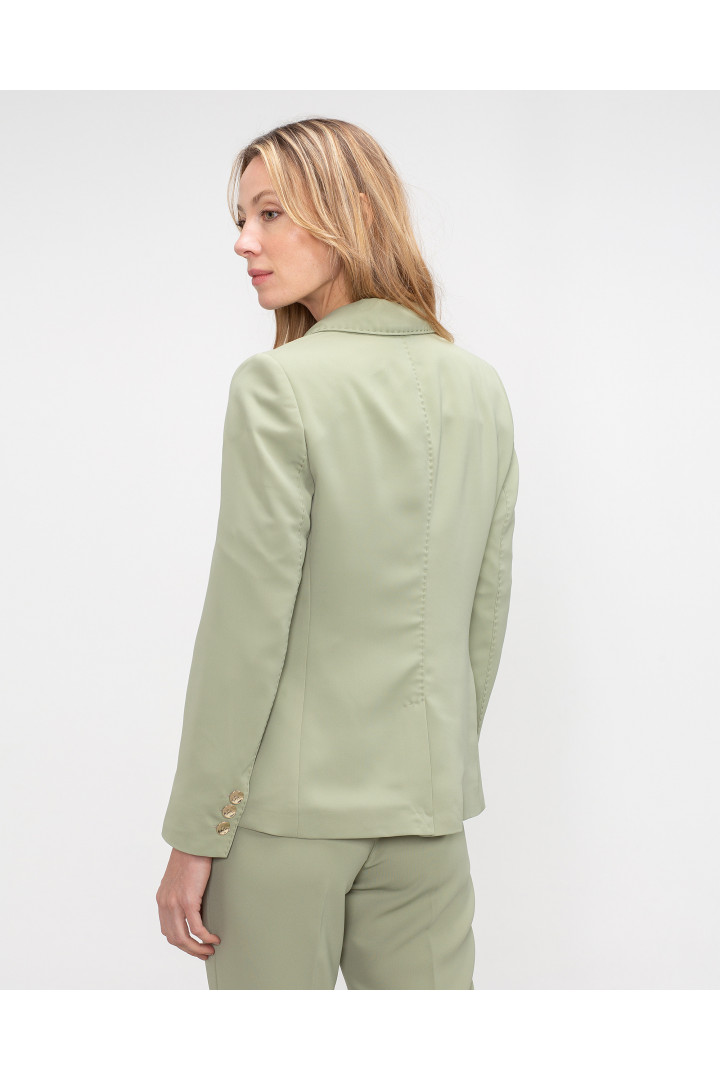 Americana Ami entallada con cuello solapa, dos bolsillos de solapa y uno en vivo. Botones y gemelos