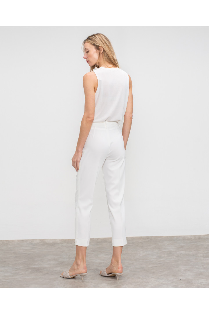 Pantalón PAIL de tiro alto con cinturilla y bolsillos con cremallera. Corte tobillero con aberturas laterales y nervio delantero. Largo de 91 cm y ancho de bajo de 16 cm. Modelo: altura 178 cm. - Talla 38