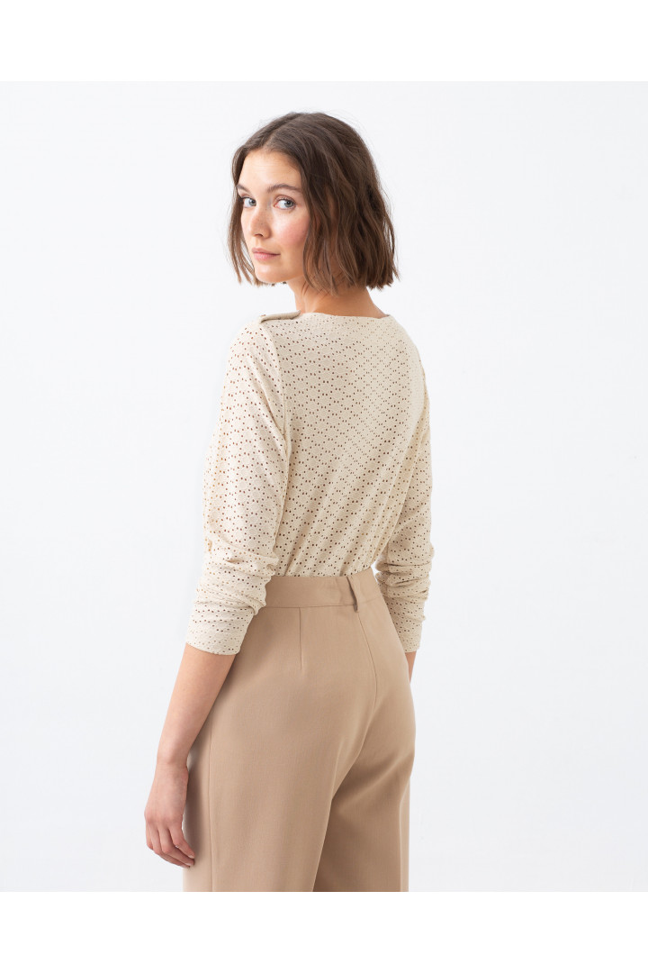 Pullover TIYO calado con cuello redondo, manga larga y detalle de botones en el hombro.Modelo: altura 178 cm. - Talla 38