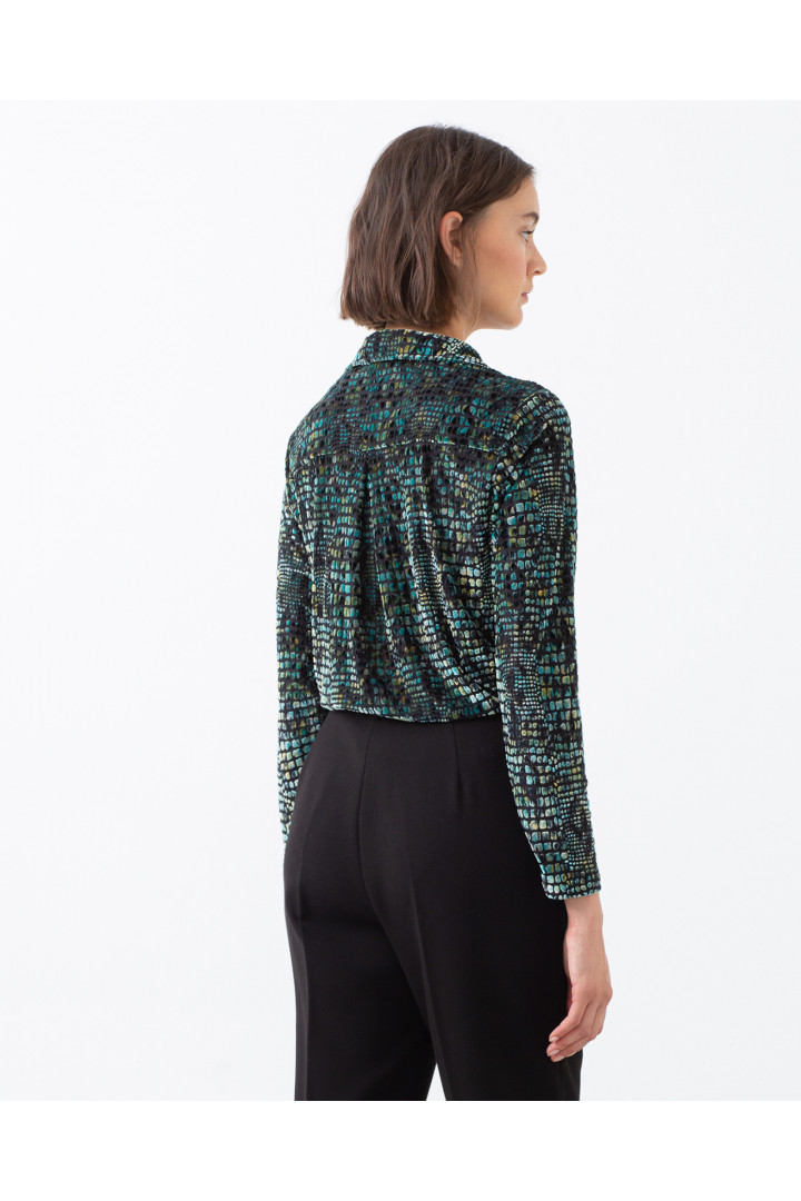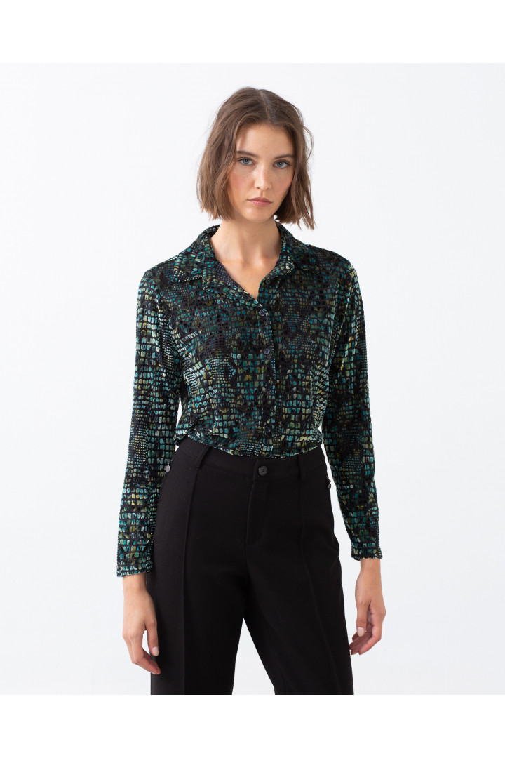 Camisa TILA de terciopelo, cuello camisero y de manga larga.