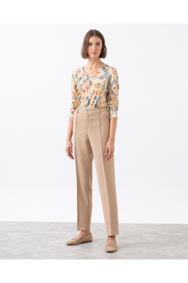 Pantalón PAYNER recto de tiro alto con nervio delantero y bolsillos con cremallera. Cinturilla con pasadores para cinturón. Bajo de 19 cm. Modelo: altura 178 cm. - Talla 38