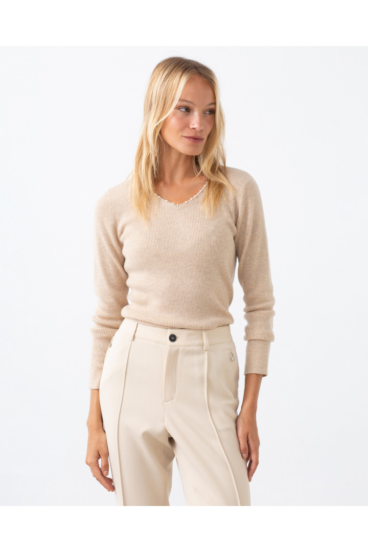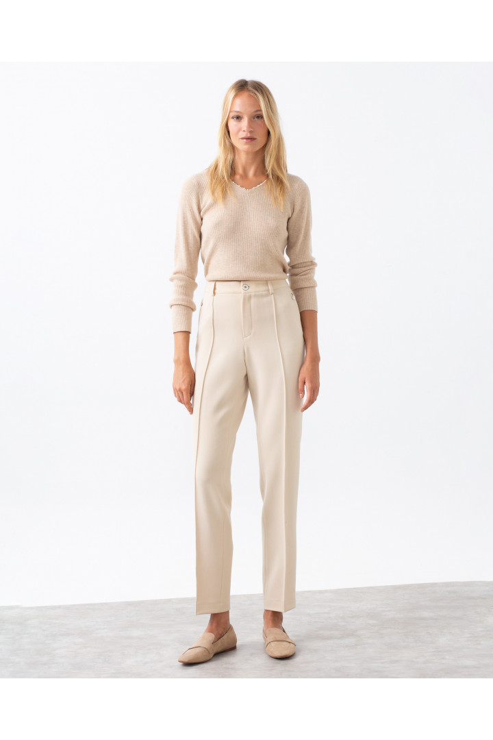 Pantalón PAY recto de tiro alto con nervio delantero y bolsillos con cremallera. Cinturilla con pasadores para cinturón.Modelo: altura 178 cm. - Talla 38