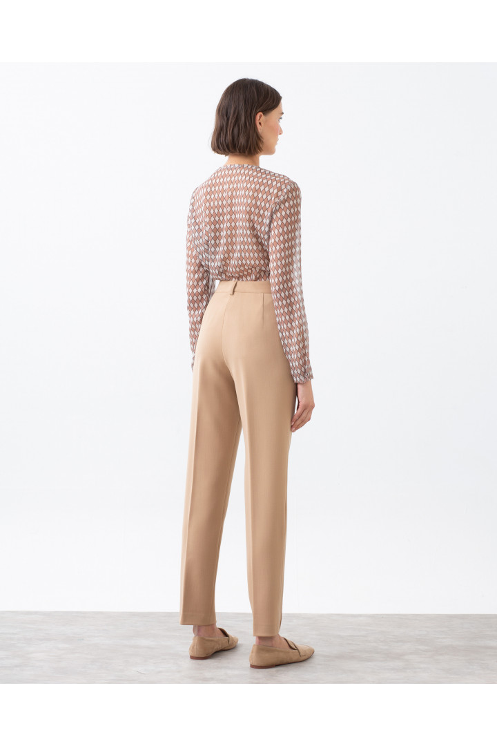 Pantalón PAY recto de tiro alto con nervio delantero y bolsillos con cremallera. Cinturilla con pasadores para cinturón. Largo de 109 cm y ancho de bajo de 16 cm.