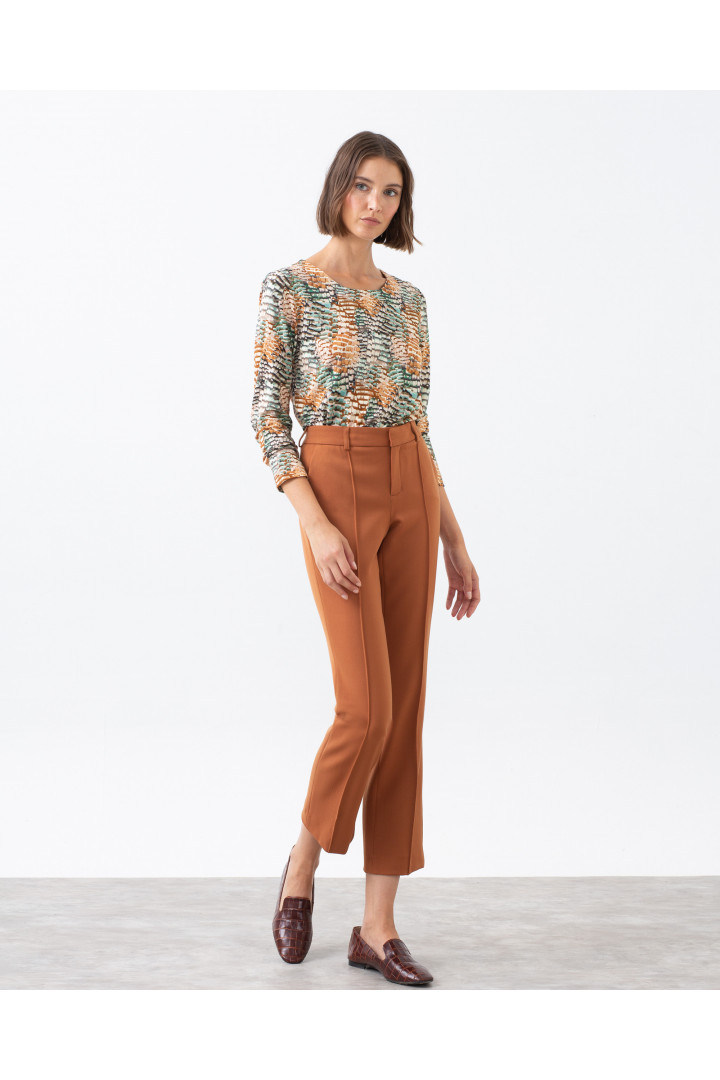 Pantalón PALOS de tiro alto tobillero flare, con nervio delantero y bolsillos lateralesModelo: altura 178 cm. - Talla 38