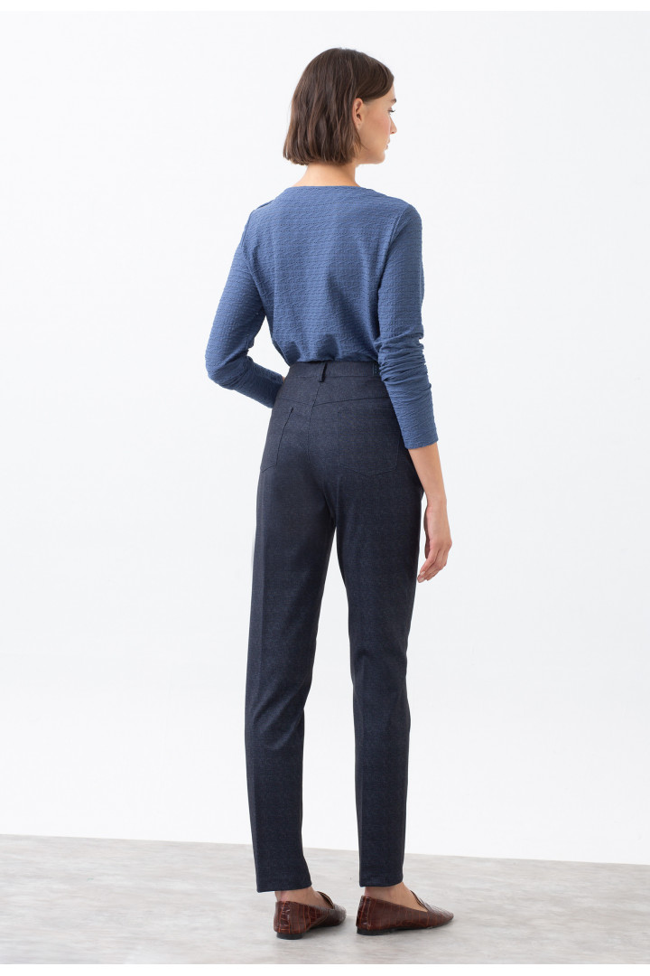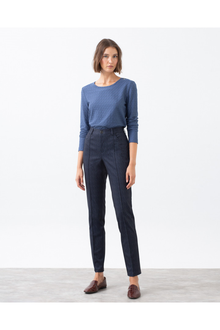 Pantalón PITES de punto roma recto de tiro alto con cuatro bolsillos y cinturilla con pasadores para cinturón con nervio delantero. Largo de 107 cm y ancho de bajo 16 cm.Modelo: altura 178 cm. - Talla 38