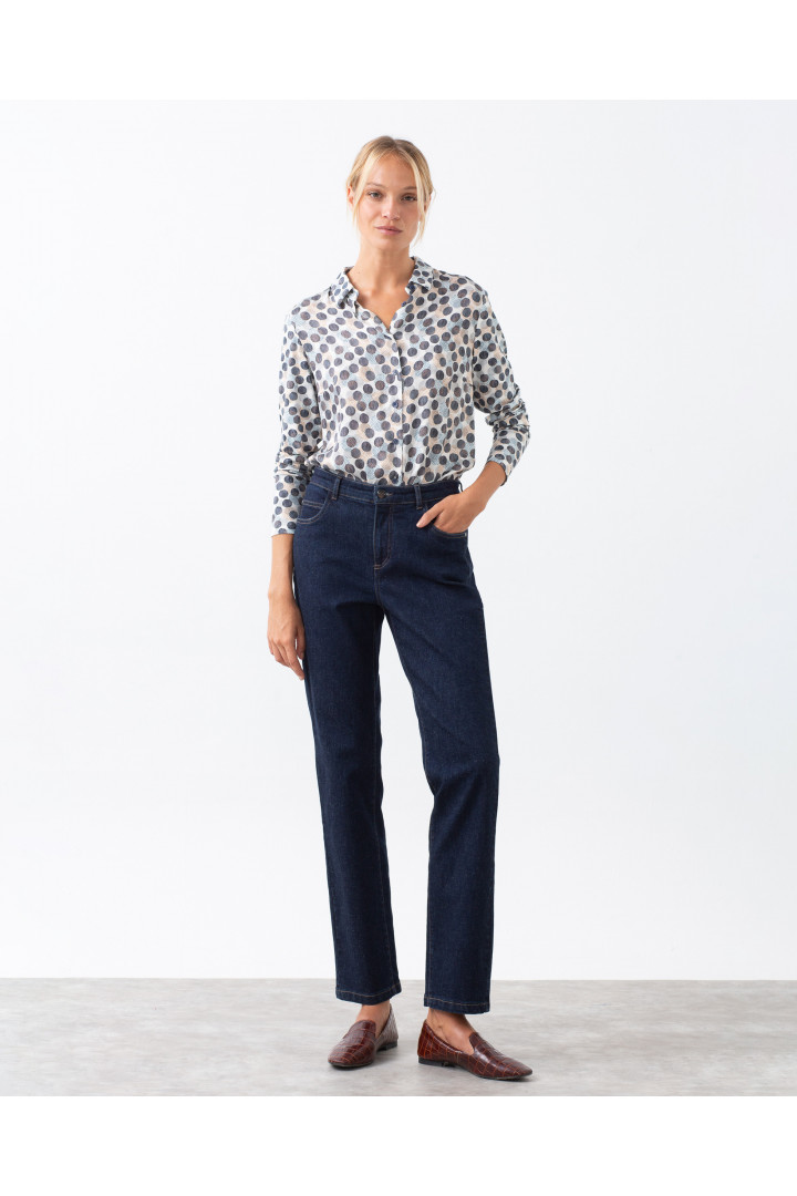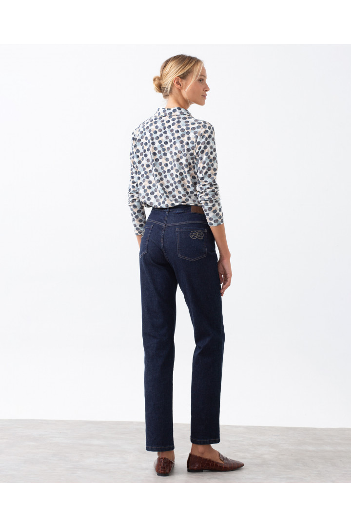 Vaquero PATRONITJ cinco bolsillos recto de tiro alto con pespuntes a contraste. Detalle de ancla con bordado de logo en el bolsillo trasero. Modelo: altura 178 cm. - Talla 38