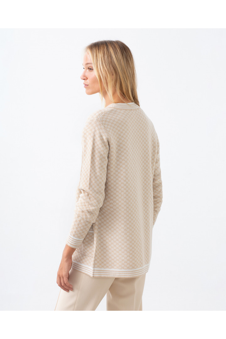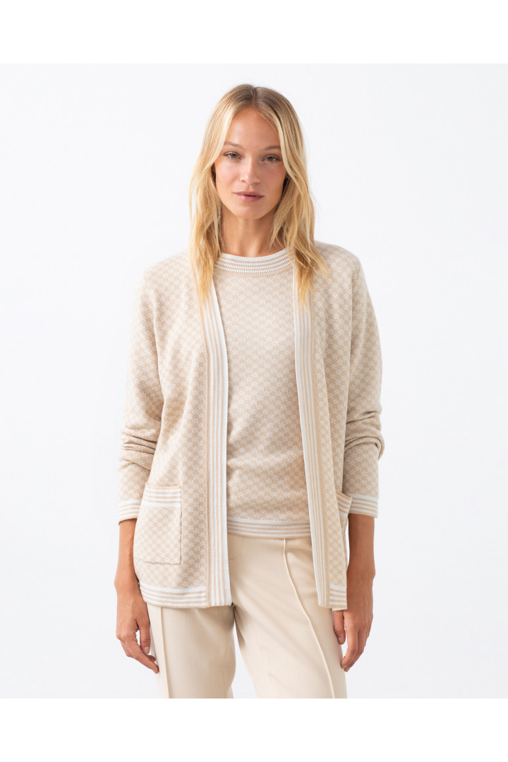 Cardigan TIMSI con manga larga con bolsillo plastrón ribeteado a contraste en escote sin botones puños y bajos. Modelo: altura 178 cm. - Talla 38
